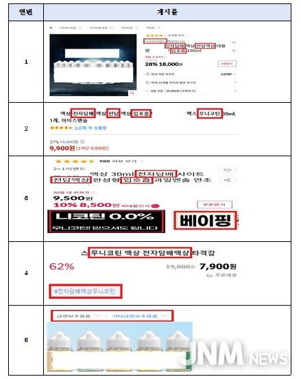 집중점검 결과 온라인 광고 171건 차단 요청, 전자담배 판매점 16곳 계도