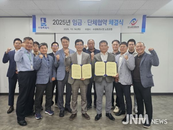 제이앤엠뉴스 | 수원특례시는 14일 수원시청 노동조합(환경관리원)과 ‘2025년 임금 및 단체협약’을 체결했다.