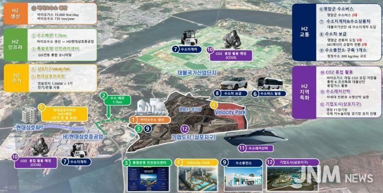 이를 위해 2028년까지 2MW급 청정수소 실증 플랜트를 구축하고, 2030년까지 영암군을 60MW급 에너지 자립형 수소도시로 발전시킬 계획이다.