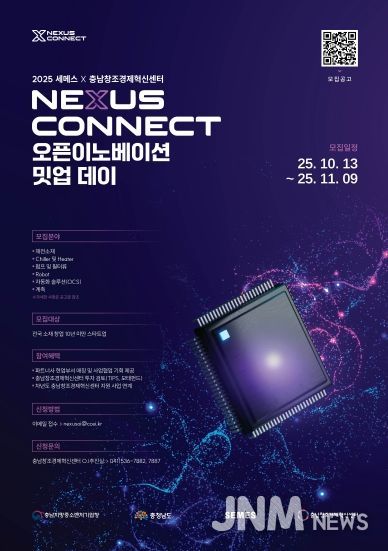 제이앤엠뉴스 | (재)충남창조경제혁신센터와 세메스(주)는 반도체·디스플레이 장비 혁신을 이끌 유망 스타트업을 발굴·육성하기 위해 ‘2025 세메스 × 충남창조경제혁신센터 Nexus Connect 오픈이노베이션 밋업 데이’ 참여 기업을 11월 9일까지 모집한다.
