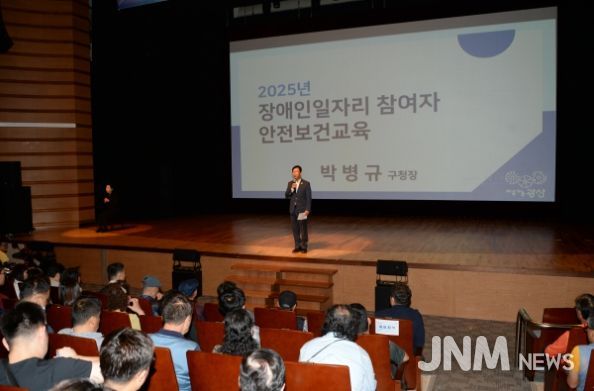 제이앤엠뉴스 | 광주 광산구가 15일 광산문화예술회관 1층에서 2025년 장애인일자리사업 참여자 산업안전보건교육을 진행했다.