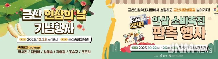 군 관계자는 “이번 행사를 통해 금산 인삼의 우수성을 널리 알리고 지역 경제 활성화에도 기여할 수 있기를 기대한다”며 “신나는 공연과 소비촉진 행사가 준비된 만큼 많은 관심과 참여를 부탁드린다”고 말했다.