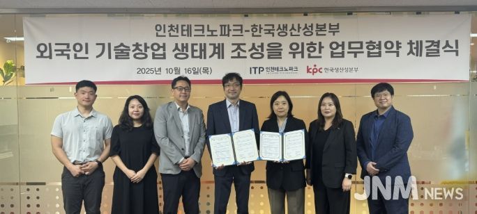 제이앤엠뉴스 | 인천테크노파크는 지난 16일 한국생산성본부와 ‘외국인 창업 활성화 및 창업 생태계 조성을 위한 업무협약(MOU)’을 체결했다.