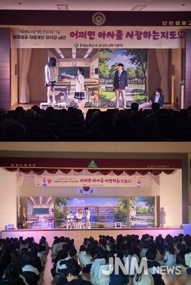 함평군은 20일 “함평군 보건소 정신건강복지센터가 지난 16일부터 17일 이틀간 함평골프고·함평초·함평중학교 등 3개 학교에서 ‘생명 존중 문화’를 주제로 창작 뮤지컬 공연을 진행했다”고 밝혔다.