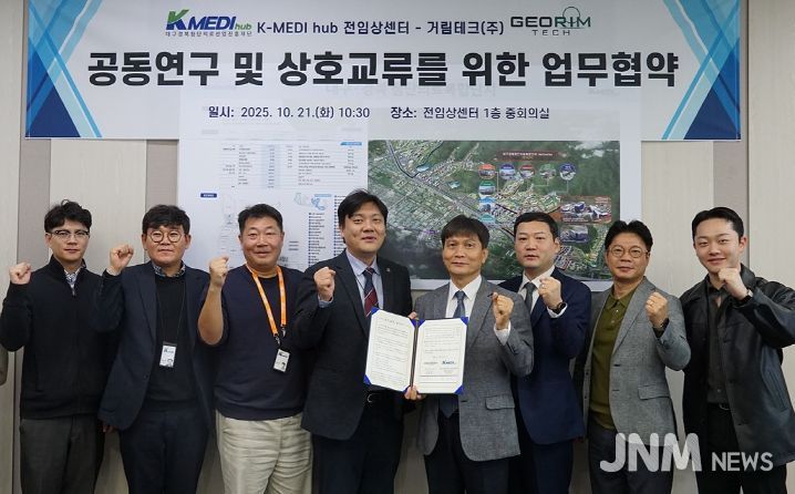 제이앤엠뉴스 | 케이메디허브(대구경북첨단의료산업진흥재단) 전임상센터가 21일 거림테크(주)와 필름 기반 의료기기 공동개발을 위한 업무협약을 체결했다.
