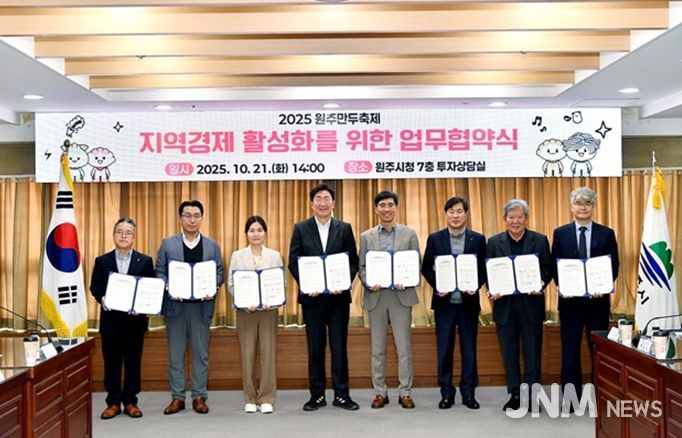 제이앤엠뉴스 | 원주시는 오는 24일부터 26일까지 열리는 ‘2025 원주만두축제’의 성공적 개최와 지역 상권 활성화를 위해, 21일 시청에서 ‘지역경제 활성화를 위한 업무협약’을 체결했다.
