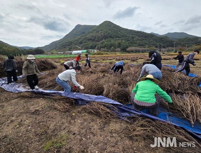 제이앤엠뉴스 | 금산군청 민원지적과는 지난 21일 군북면 산안리의 농가를 방문해 가을철 농촌일손돕기를 전개했다.