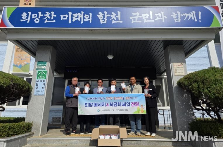 제이앤엠뉴스 | 합천군은 10월 22일, 정신건강의 날(10월 10일)을 맞아 정신건강 홍보주간행사 ‘마음의 씨앗 심기 캠페인’을 통해 모인 응원엽서와 시금치 씨앗을 수해 피해가 컸던 가회·삼가·용주면에 각각 전달했다.