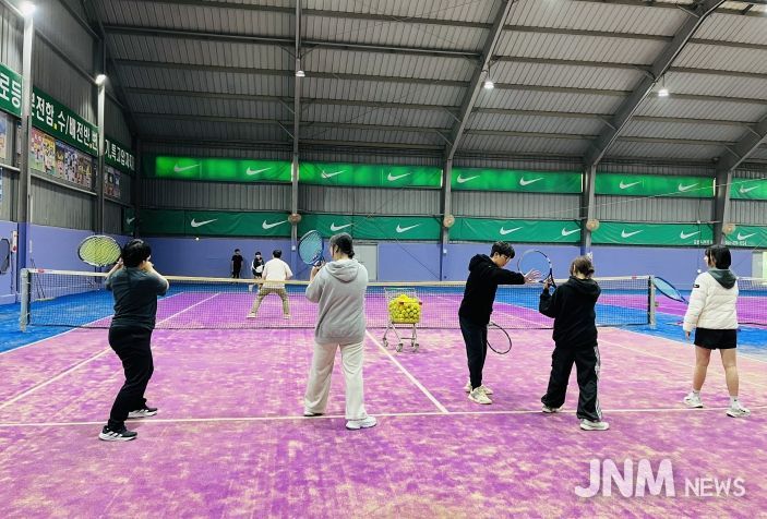 제이앤엠뉴스 | 김천시는 김천시학교밖청소년지원센터에서 학교 밖 청소년들의 신체활동 증진과 사회성 향상을 위해 ‘초급 테니스 강습 프로그램’을 10월 27일부터 11월 26일까지(총 15회) 운영한다고 밝혔다. 강습은 김천실내테니스장(초곡)에서 진행되며, 총 10명의 학교 밖 청소년이 참여한다.