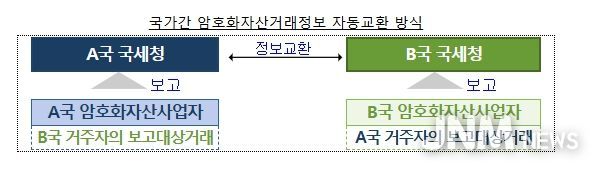 국세청은 정보교환협정 가입국과 상대국 거주자의 암호화자산 거래정보를 상호교환 하며, 첫 정보교환은 ’26년 거래정보에 대해 ’27년 이행 예정이다.