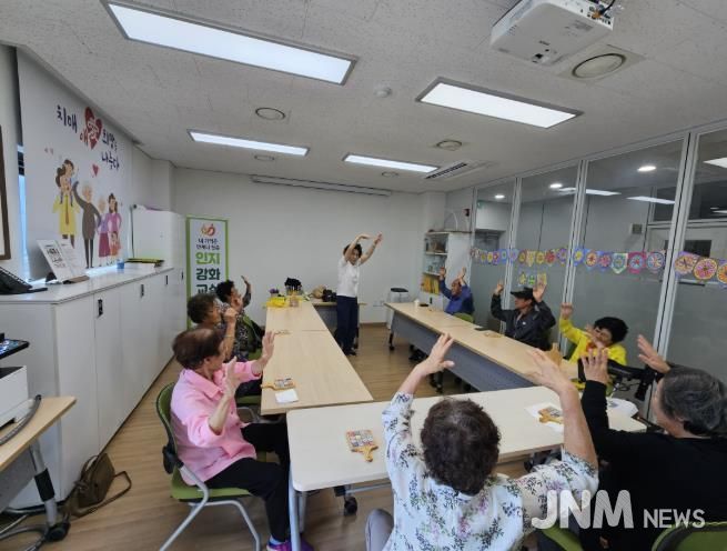 ‘인지강화교실’은 어르신들의 기억력·주의력·집중력 향상과 인지기능 유지 및 강화를 목표로, ▲두뇌활동 훈련 ▲회상치료 ▲미술·공예활동 ▲음악·신체활동 등 다양한 인지자극형 프로그램으로 구성됐다.