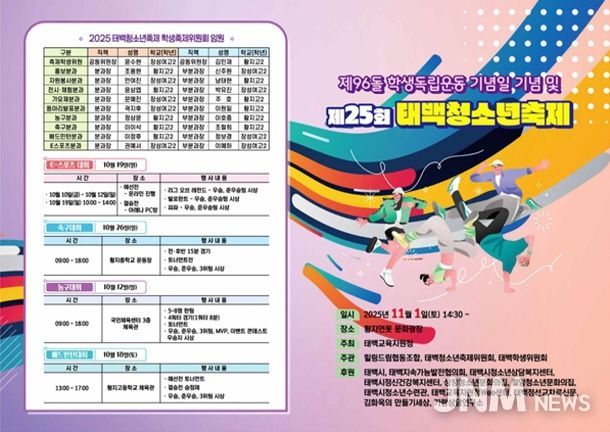 제이앤엠뉴스 | 태백교육지원청은 11월 1일 오후 2시 황지연못 문화광장에서 제25회 태백청소년축제를 개최한다.
