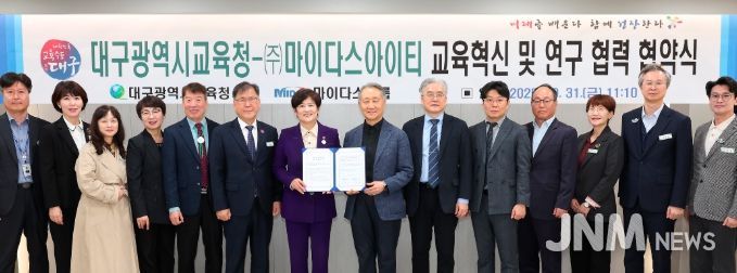 제이앤엠뉴스 | 대구시교육청은 10월 31일 오전 11시 시교육청 접견실에서 ㈜마이다스아이티와 ‘교육혁신 및 연구 협력을 위한 업무 협약’을 체결했다.