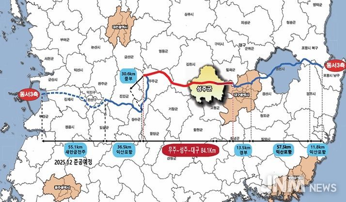 동서3축(새만금~포항) 고속도로는 서부권과 동부권을 직접 연결하는 국가 간선축으로, 2025년 11월 새만금~전주(L=55.1km) 구간이 개통되면, 무주~성주~대구 구간만이 미개통 상태로 남게 되어 현재까지 영호남 간 물류 이동과 산업 연계가 크게 제약을 받아왔다.