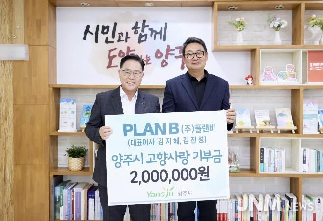 제이앤엠뉴스 | ㈜플랜비가 5일 오전 양주시에 지역 발전을 위해 고향사랑기부금 200만 원을 전달했다.