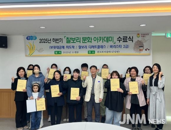 제이앤엠뉴스 | 영광군은 지난 11월 5일 군남 찰보리어울터에서 ‘찰보리 디저트클래스 과정’ 수료식을 개최하고, 총 12회 24시간에 걸친 교육과정을 성실히 이수한 14명의 교육생에게 수료증을 수여했다.