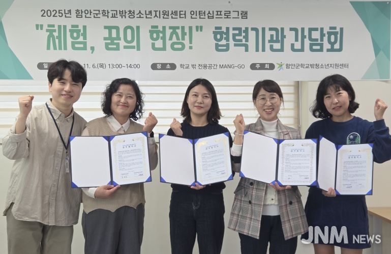 제이앤엠뉴스 | 함안군 학교밖청소년지원센터(센터장 배현주)는 지난 6일 함안군청소년수련관 내 학교 밖 청소년 전용공간 ‘망-고(MANG-GO)’에서 지역 관련 기관 대표들과 함께 ‘2025년 학교 밖 청소년 직무실습(인턴십) 협력기관 간담회’를 열었다.