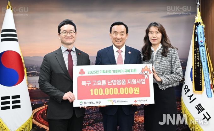 제이앤엠뉴스 | 울산사회복지공동모금회는 7일 2025년 기후위기극복 지원사업 배분금 1억원을 북구청에 전달했다.