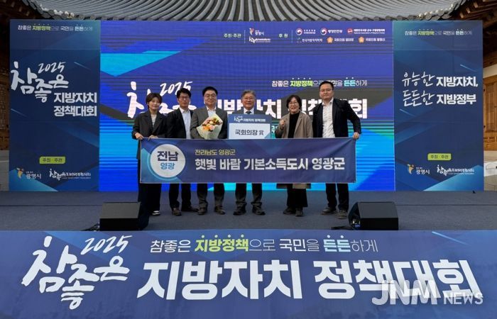 제이앤엠뉴스 | 영광군은 7일 국회의사당 사랑재에서 열린 ‘2025 참좋은 지방자치 정책대회’에서 ‘햇빛바람 기본소득’ 정책을 발표하며 국회의장상을 수상했다.