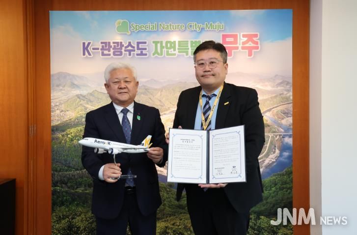 제이앤엠뉴스 | 무주군은 지난 10일 에어로케이항공(주)과 ‘지역관광 활성화 및 상생 협력체계 구축을 위한 업무협약’을 체결했다.