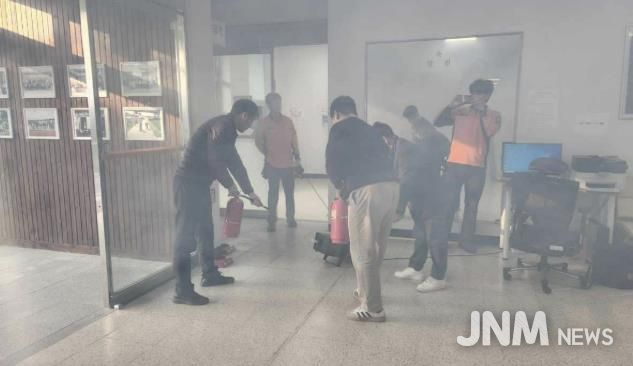 제이앤엠뉴스 | 홍북읍 행정복지센터에서는 지난 7일 직원 및 내포119안전센터 소방관 등 29명이 참여한 가운데 홍북읍 행정복지센터 공공청사에 대한 소방훈련을 실시했다.