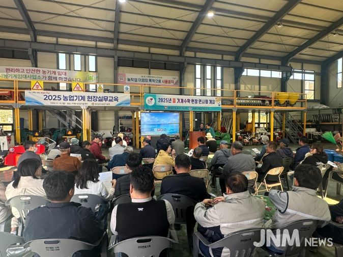 제이앤엠뉴스 | 거제시농업기술센터는 콩 재배 농가의 노동력 절감과 기계화 영농 활성화를 위해 “2025년 콩 기계수확 현장연시회”를 지난 11월 10일 13시 30분부터 16시 30분까지 거제시 농기계 임대사업장, 거제면 서정리 446-2, 446-3번지 일원에서 개최했다고 밝혔다.
