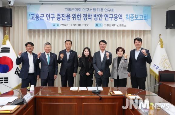 제이앤엠뉴스 | 고흥군의회 의원연구단체인 ‘고흥군의회 인구소멸 대응 연구회’는 지난 11월 10일 군의회 소회의실에서 ‘고흥군 인구 증진을 위한 정착 방안 연구용역’ 최종보고회를 개최하고 올해 연구활동을 성공적으로 마무리했다고 밝혔다.