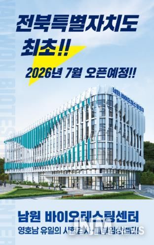 제이앤엠뉴스 | 남원시가 지역 내 바이오산업 활성화와 연구기반 확보를 위한 ‘남원 바이오테스팅센터’가 2026년 7월 개관한다.