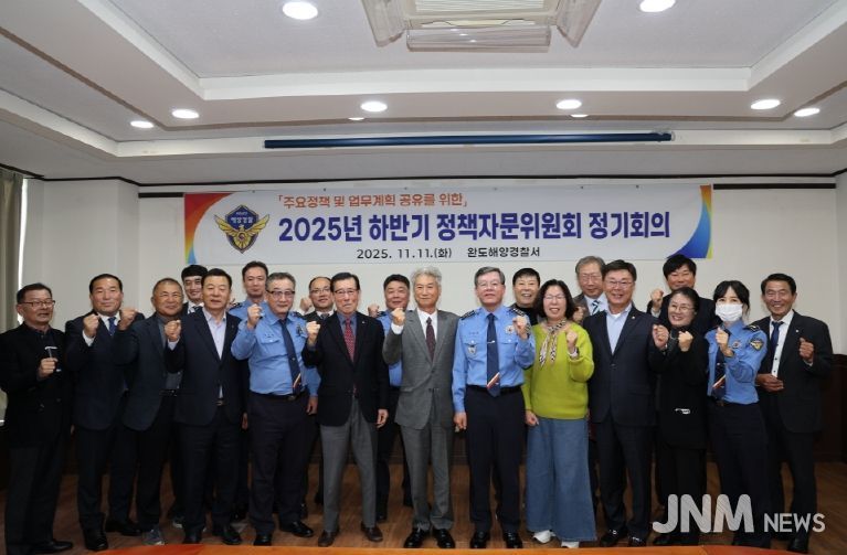 제이앤엠뉴스 | 완도해양경찰서(서장 김길규)는 해양경찰 주요 정책의 추진 방향을 논의하고 민ㆍ관 협력체계를 강화하기 위해 ‘2025년 하반기 정책자문위원회 정기회의’를 개최했다고 11일 밝혔다.