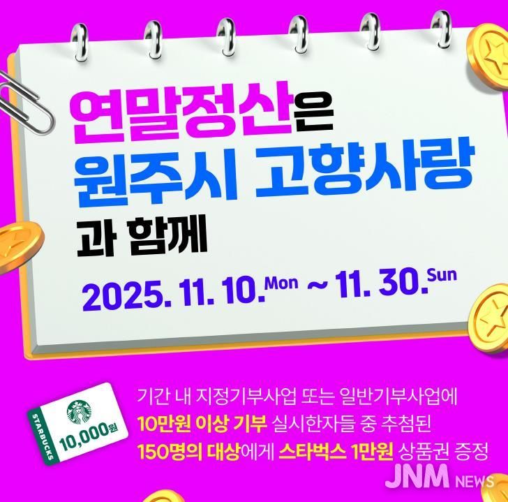 제이앤엠뉴스 | 원주시는 지정기부사업인 ‘청소년밴드 동아리 활성화 지원사업’을 시민들에게 널리 알리고, 고향사랑기부제 참여를 독려하기 위해 스타벅스 상품권 추첨 이벤트를 실시한다.