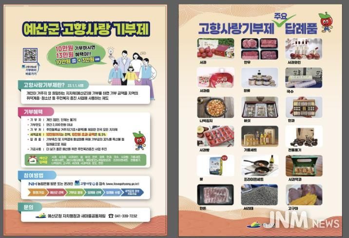 제이앤엠뉴스 | 예산군은 2026년도 고향사랑기부제를 위한 답례품과 공급업체를 새롭게 모집한다고 밝혔다.