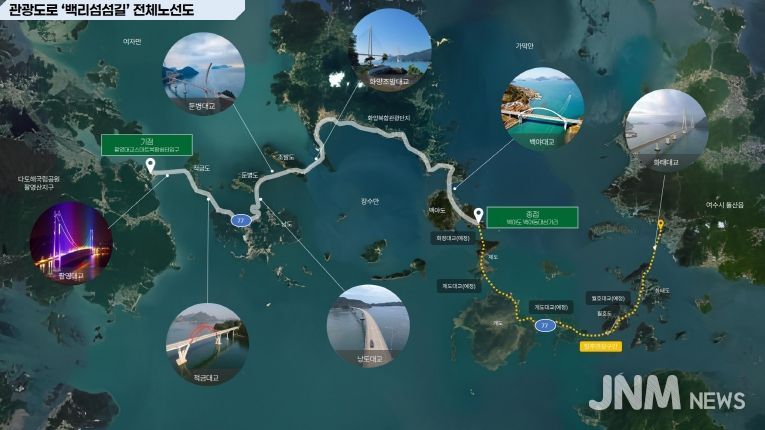 제이앤엠뉴스 | 전라남도는 국토교통부가 최초로 추진한 ‘2025년 대한민국 관광도로’ 지정 평가에서 여수 백리섬섬길(국도77호선)이 전남 첫 노선으로 지정됐다고 밝혔다.