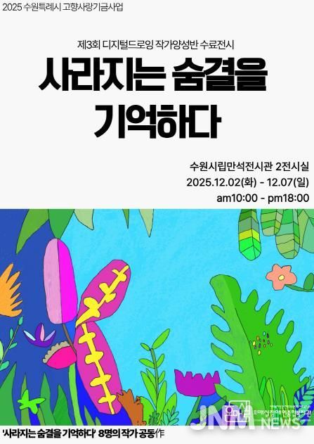 제이앤엠뉴스 | 고향사랑기부금 사업으로 운영된 ‘발달장애인 디지털드로잉작가 양성교육’의 성과를 담은 전시회 ‘사라지는 숨결을 기억하다’가 12월 7일까지 수원시립만석전시관에서 열린다.