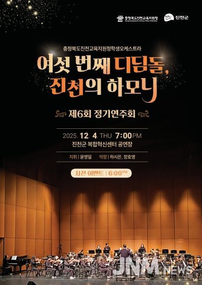 제이앤엠뉴스 | 진천교육지원청은 오는 12월 4일, 복합혁신센터에서 ‘제6회 진천교육지원청학생오케스트라 정기연주회’를 개최하여 성황리에 막을 내렸습니다. 정기연주회는 지난 1년간 갈고닦은 단원들의 빛나는 성과를 선보이는 자리이자, 지역 주민들에게 감동적인 문화 향유의 기회를 제공하기 위해 마련됐다.