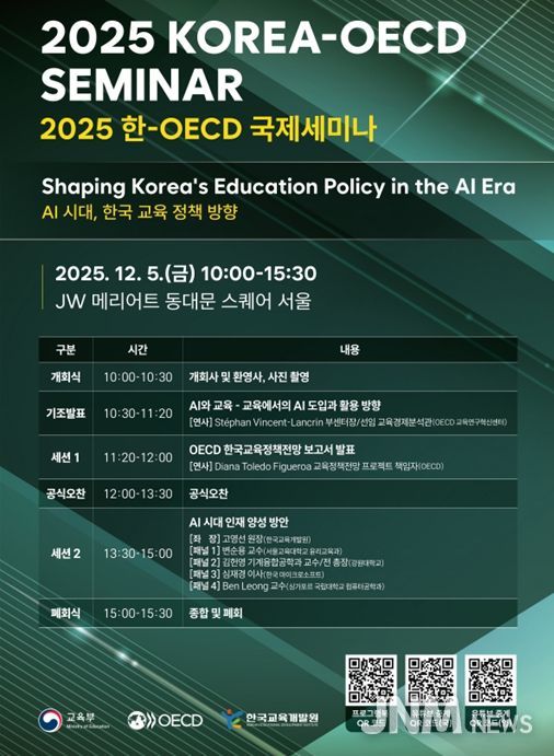 제이앤엠뉴스 | 교육부는 한국교육개발원(원장 고영선)과 함께 12월 5일, 서울에서 한-경제협력개발기구(OECD; Organisation for Economic Co-operation and Development) 국제토론회(세미나)를 개최한다.
