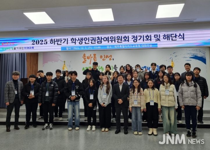 제이앤엠뉴스 | 제주특별자치도교육청은 3일 도교육청 대회의실에서 도내 초중고 학생위원 30명이 참석한 가운데 2025년 하반기 학생인권참여위원회 정기회 및 해단식을 개최했다.