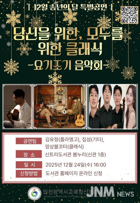 제이앤엠뉴스 | 인천광역시교육청신트리도서관은 12월 24일 오후 4시 신관 1층 봄누리에서 ‘당신을 위한, 모두를 위한 클래식’ 공연을 개최한다.