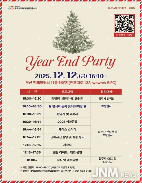 이진수 시 금융창업정책관은 “부산 핀테크 허브는 개소 이후 116개 기업을 지원하며, 기업 성장과 기술 혁신을 촉진하는 지역 핀테크 생태계의 중심으로 자리 잡았다”라며, “입주기업들의 매출 증대, 고용 창출, 사업모델 고도화를 적극적으로 지원하고, 이러한 성과를 기반으로 내년에는 글로벌 핀테크 허브로 도약하는 데 모든 역량을 집중하겠다”라고 밝혔다.