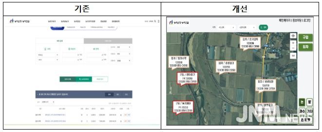농지은행 사업 신청을 위한 농지은행 포털을 텍스트 기반에서 지리적 정보(GIS) 기반으로 개편한다. 농지은행 임대 농지 현황과 지도상 위치, 작물재배 이력 정보, 거래가격 등 정보를 ’26년 1월부터 제공한다. 청년농 등 사업 수요자는 지도(스카이뷰, 로드뷰 등)상에서 임대 매물 정보를 직관적으로 확인후 농지 임대 등을 신청할 수 있게 되어 정보 접근성이 크게 개선될 것으로 기대된다.