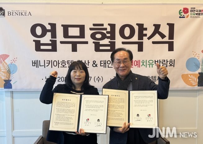 제이앤엠뉴스 | 태안국제원예치유박람회조직위는 지난 12월 17일 베니키아 호텔 서산과 입장권과 숙박을 연계한 관광상품 개발을 위한 업무협약을 체결했다고 밝혔다.
