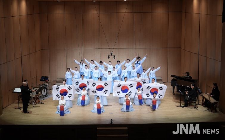 두 번째 무대에서는 단원들이 한복을 입고 ‘홀로 아리랑’ 등을 청년예술단체 ‘마므로’ 팀의 국악 반주와 함께 선보였고, 청사초롱과 태극기를 활용한 안무를 더해 전통의 아름다움과 애국의 정서를 담아내 관객들에게 깊은 여운을 선사했다.