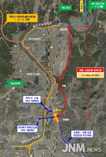 제이앤엠뉴스 | 대전시는 대덕구 연축동~신탄진 용정초교를 잇는 ‘와동~신탄진동 도로개설사업’이 22일 기획재정부 재정사업평가위원회 심의를 거쳐 예비타당성조사 대상사업으로 선정됐다.
