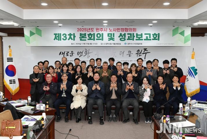 제이앤엠뉴스 | 원주시 노사민정협의회는 23일 오후 5시 시청 10층 대회의실에서 제3차 본회의 및 성과보고회를 개최했다.