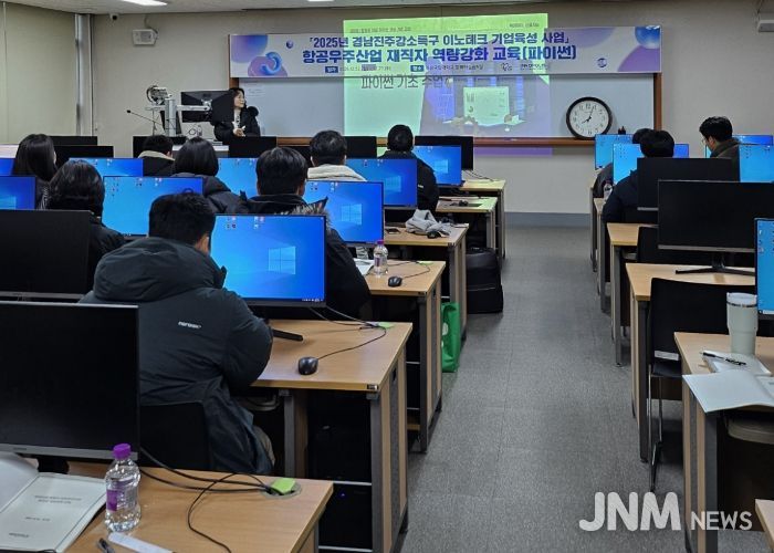 제이앤엠뉴스 | 경상국립대학교 경남진주강소특구지원센터는 12월 22~23일 산학협력 중심의 칠암캠퍼스에서 우주항공산업 분야 재직자를 대상으로 ‘파이썬을 활용한 재직자 역량강화 교육’을 실시했다.