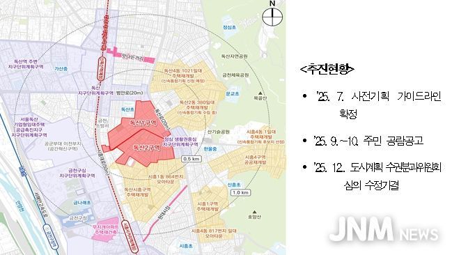 제이앤엠뉴스 | 서울시는 2025년 12월 24일 '제14차 도시계획위원회 신속통합기획 정비사업 등 수권분과위원회'를 개최하여 ‘독산동 1036일대(독산1구역)’과 ‘독산동 1072 일대(독산2구역)’ 주택정비형 재개발사업 정비구역 지정 및 정비계획 결정(안)을 '수정가결' 했다고 밝혔다.