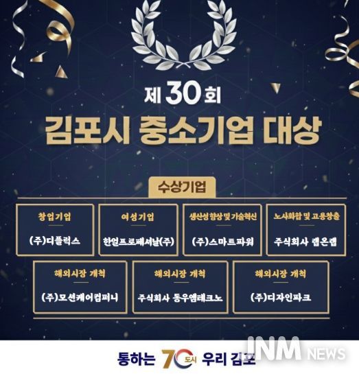 김포시 중소기업대상은 1996년부터 시작해 올해로 30회를 맞이한 김포시 중소기업 분야 최고 권위의 시상으로, 관내 우수 중소기업을 발굴·격려하기 위해 매년 추진되고 있다.