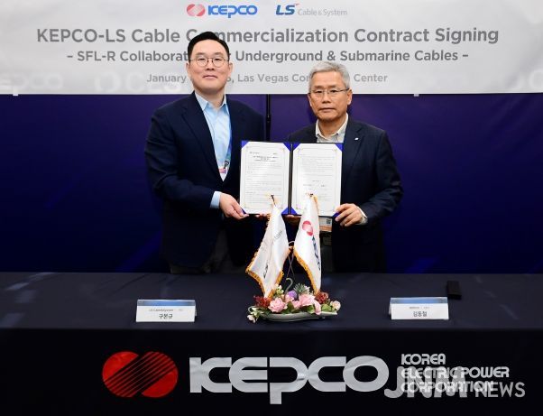 한전은 1월 6일(화) CES 2026 행사가 개최되는 미국 라스베가스에서 한전의 지중·해저케이블 상태판정 기술 SFL-R(Smart Fault Locator-Real Time, 실시간 탐지 기술)의 사업화 협력과 글로벌 시장 공동 진출을 위해 LS전선과 계약을 체결했다. 체결식에는 한전 김동철 사장과 LS전선 구본규 사장 등 양사 경영진이 참석했다.