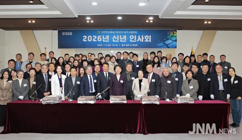 제이앤엠뉴스 | 민주평화통일자문회의 원주시협의회는 2026년 신년을 맞아 지난 9일 원주 빌라드 아모르에서 신년인사회를 개최하고, 지역 내 평화통일 활동 정착과 지역사회 발전 및 화합을 기원했다.