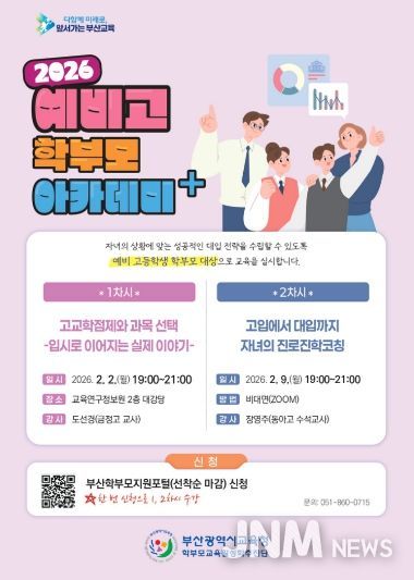 제이앤엠뉴스 | 부산광역시교육청은 자녀의 상급학교 진학을 앞둔 예비 초·중·고 학부모의 불안감을 해소하고, 변화하는 학교생활과 교육과정에 대한 이해를 돕기 위해 다음달 2일부터 '학부모 아카데미+(플러스)' 예비과정을 운영한다고 밝혔다.
