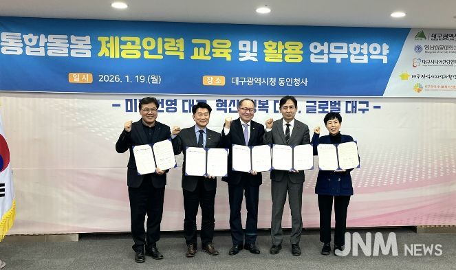 제이앤엠뉴스 | 대구광역시는 1월 19일 오후 2시, 동인청사 2층 상황실에서 영남이공대학교, 대구시니어클럽협회, 대구지역자활센터협회, 대구사회복지관협회와 함께 ‘대구광역시 통합돌봄 서비스 제공인력 교육 및 활용에 관한 업무협약(MOU)’을 체결한다.